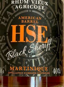 Rhum Vieux Agricole HSE Black Sheriff : couleur brune, 40%vol, 70cl, ~25€ « AOC Martinique »