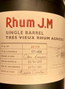Ici, par exemple, un Rhum Agricole de la distillerie J.M. en Martinique, distillerie reconnue pour ses divers Rhums Agricoles Vieux depuis des décennies, qui n’est pas sous AOC Martinique mais sous IG Rhum des Antilles Françaises.